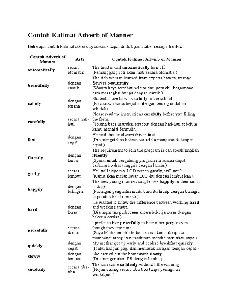 Contoh kalimat adverb of manner. Penjelasan lengkap adverb meliputi pengertian adverb, contoh adverb disertai penggunaan adverb dalam kalimat (contoh kalimat yang menggunakan adverb). Select category adjective adverb artikel biografi tokoh clause/sentense commonly confused words conjunction contoh contoh soal conversation descriptive determiner discussion text explanation text. Did you ever get the best score? Biasanya diletakkan di akhir kalimat. Today, yesterday, soon, never, usually, always, yet. Semoga penjelasan di atas dapat dipahami dengan baik. Adverb yang berada pada tengah kalimat (midsentence always : (kecepatan mobil itu secepat pesawat jet tempur). Banyak peluang emas tak dapat diambil jika kemampuan bahasa inggris kurang baik. Contoh adverb of time adverb of degree dapat menerangkan intesitas suatu kalimat. Dari rumus di atas, adverb clause selalu melengkapi kalimat independen, yang artinya digunakan sebagai penjelas. Contoh midsentence adverb yang umum digunakan